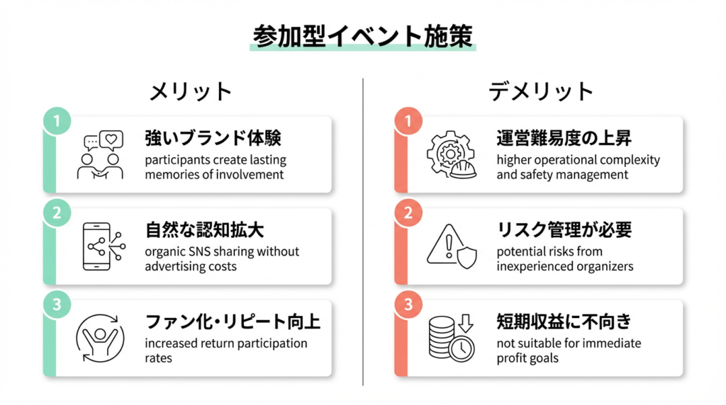 また、このタイプのイベントは短期的な売上には直結しにくく、「すぐに利益を出したいイベント」には正直向いていません。