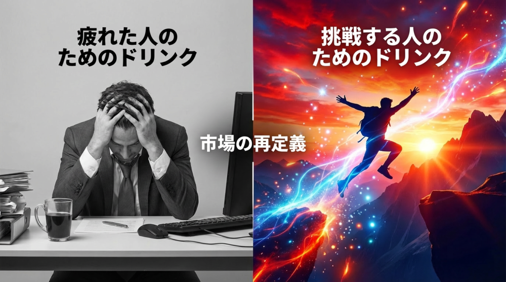 そこでレッドブルが取った戦略は、既存の市場でシェアを奪い合うことではなく、市場そのものを再定義することでした。