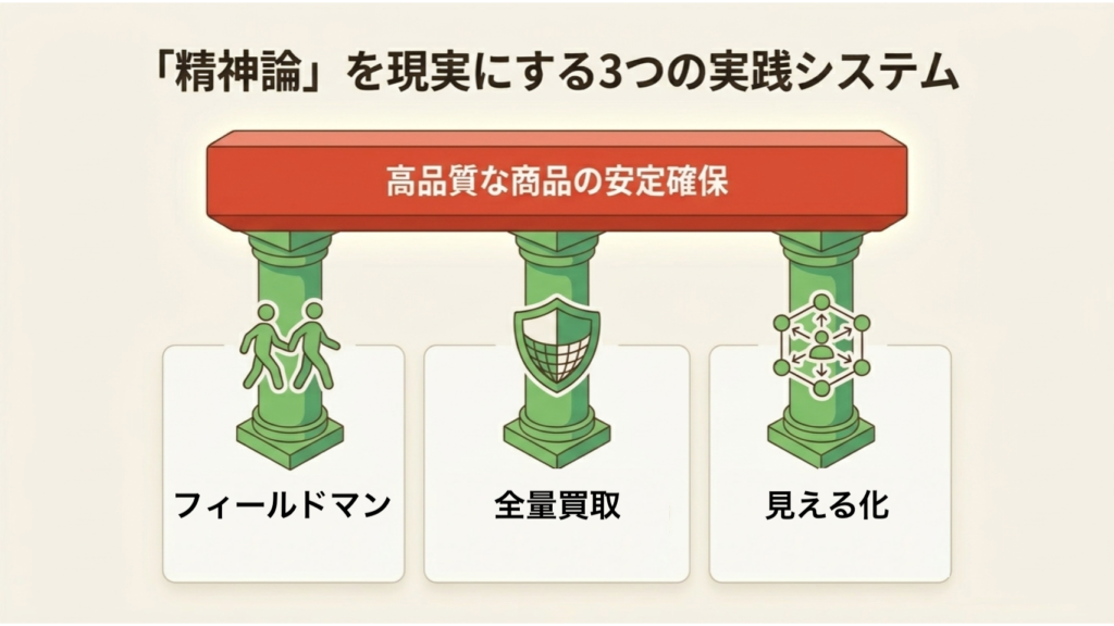 カゴメが「フィールドマン」を通じて厳しい技術指導も行うように、プロ同士として「譲れない基準」を共有し、互いに高め合う緊張感があってこそ、真の協力関係は成立すると猛省しました。