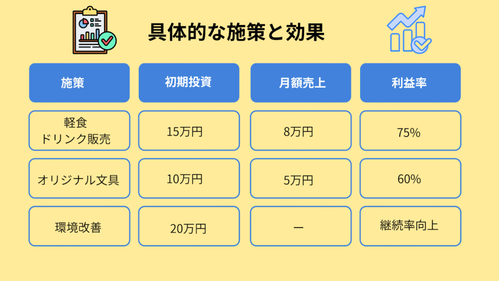 背景 地方の個人経営学習塾で、授業料だけでは収益が厳しい状況でした。