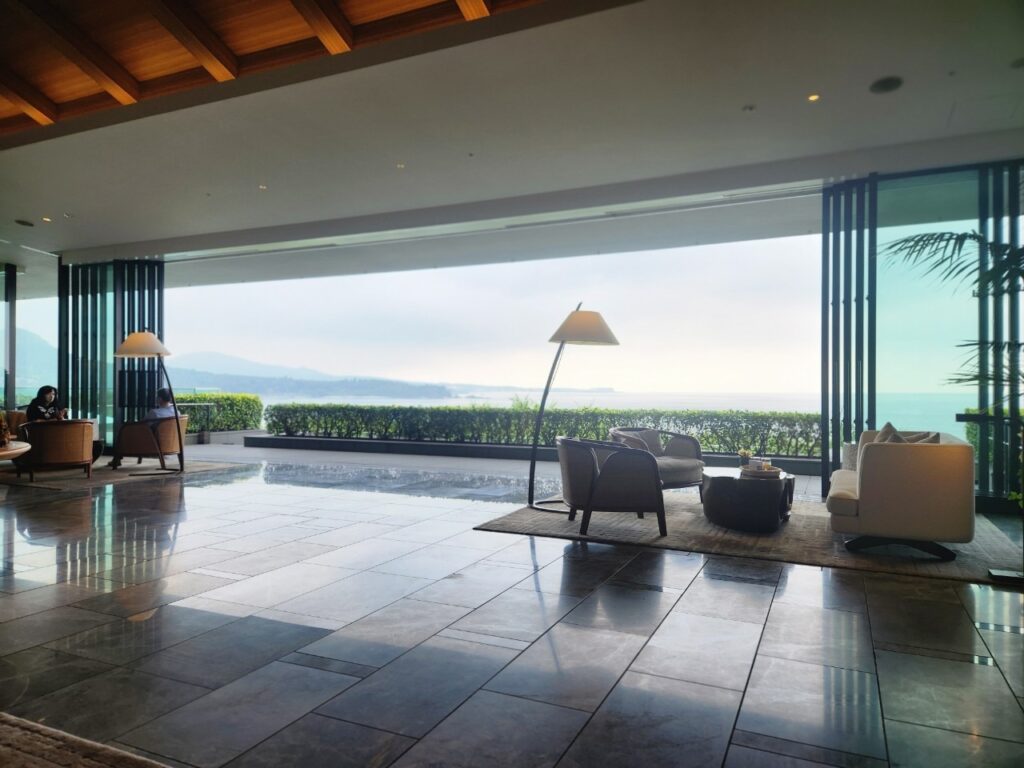 白と青の世界に映えるこの象徴的なアイテムは、写真映えすることからSNSで拡散され、ホテルのアイデンティティを視覚的に記憶させます。